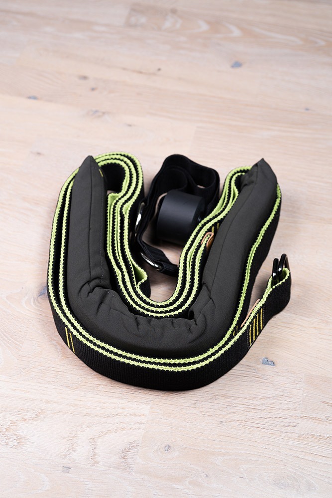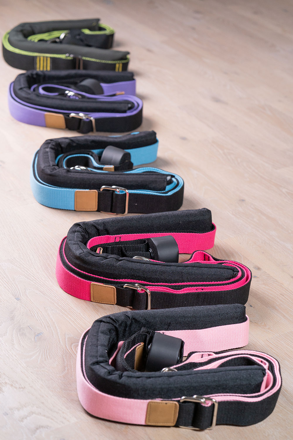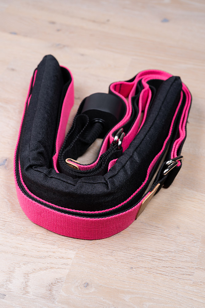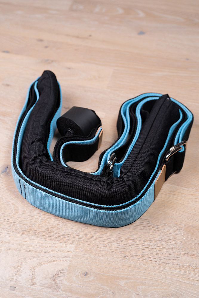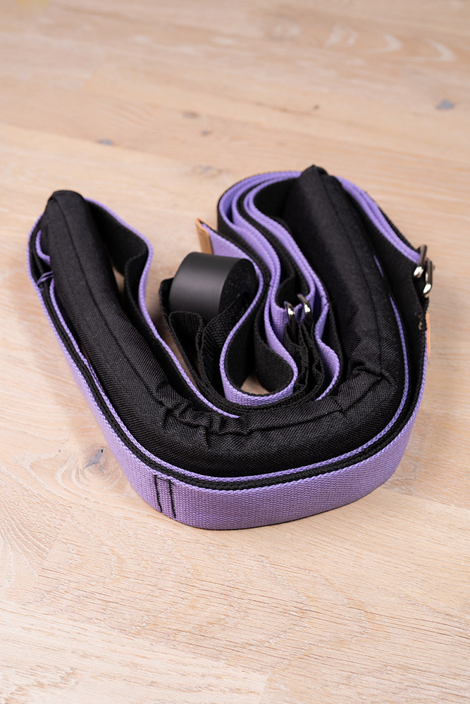 Cotton-polyester blend of padded Stability Sling for Wall Yoga or Wall Suspension training. This highly durable product comes complete with a set of two carabiners or over-door-mount options. Five color options.
